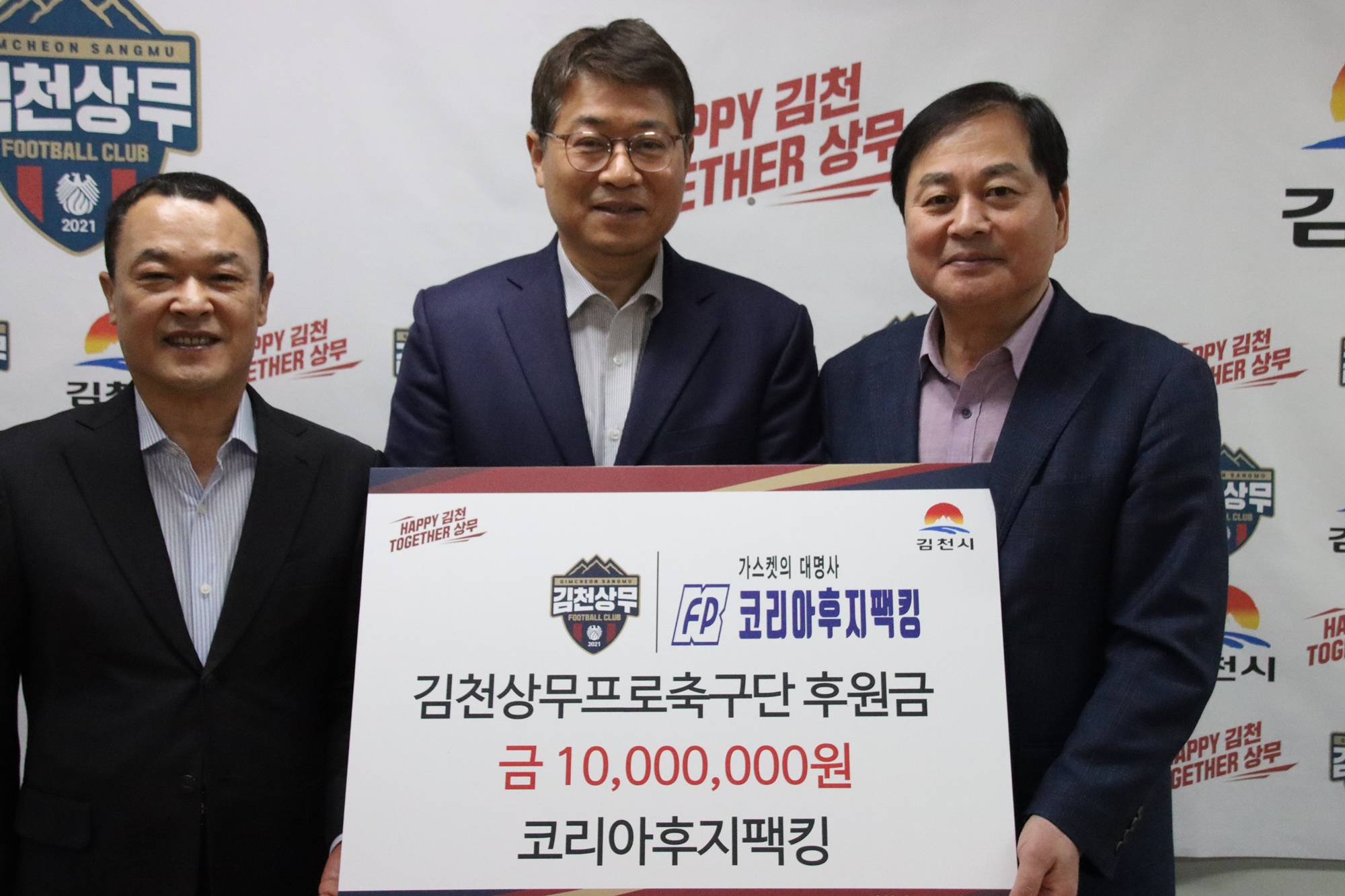 코리아후지팩킹, 김천상무에 3년 연속 후원금 전달