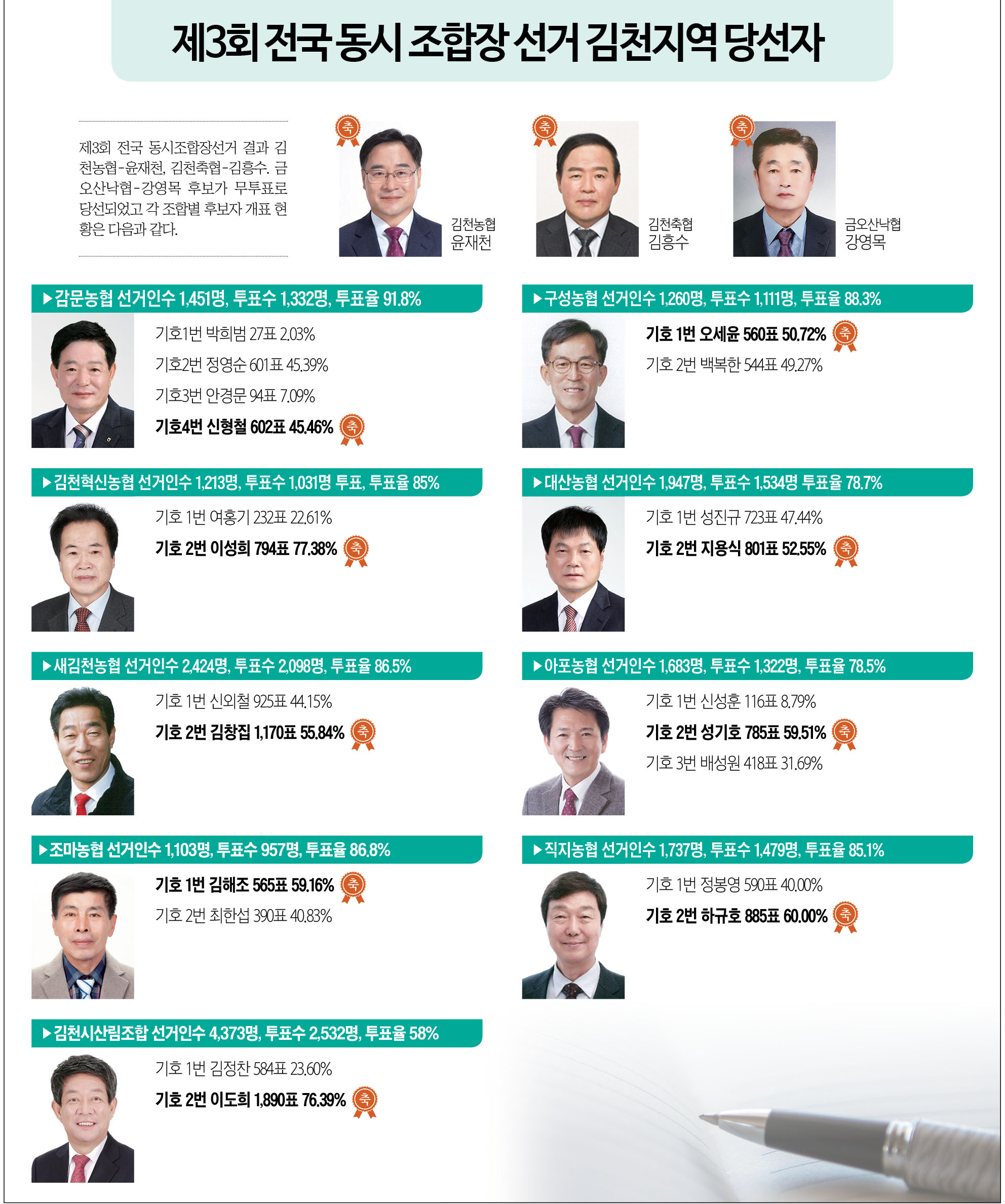 상호: 김천내일신문 / 주소: 경상북도 김천시 시청4길 6 / 발행인·편집인 : 최도철,한진희 / 청소년보호책임자 : 최도철 mail: che7844@daum.net / Tel: 054-435-2216 / Fax : 054-435-2219 / 정기간행물 등록번호 : 경북, 아00322/ 등록일 : 2014.6.16 Copyright ⓒ 김천내일신문 All Rights Reserved. 본지는 신문 윤리강령 및 그 실천요강을 준수함