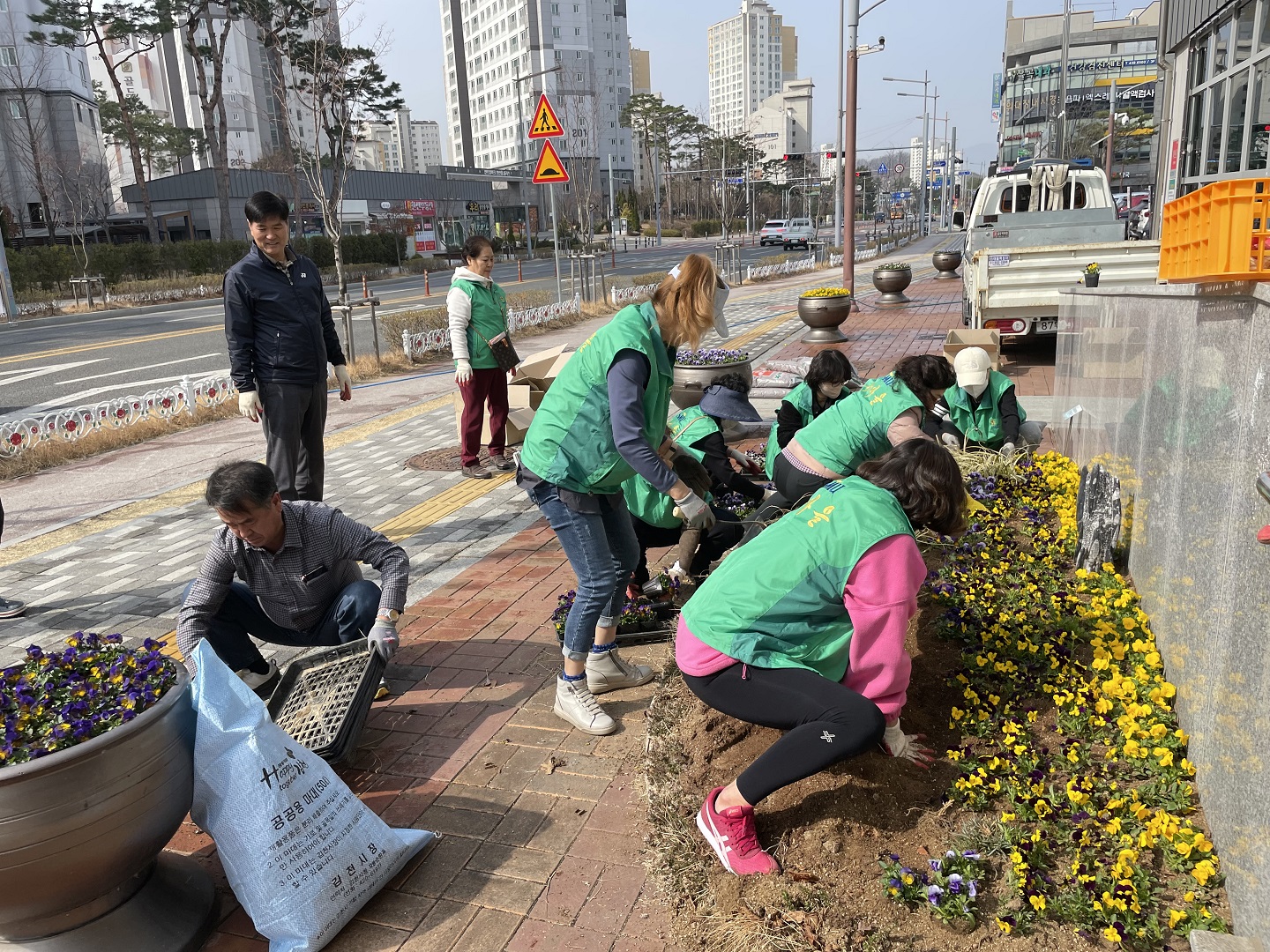 율곡동 새마을지도자협의회 회원들은 봄을 맞이하여 주민들이 도심에 녹색활기와 봄의 정취를 느낄 수 있도록 봄꽃 팬지, 비올라, 금잔화, 데이지 등 500본을 식재하여 봄맞이 준비를 마쳤다.