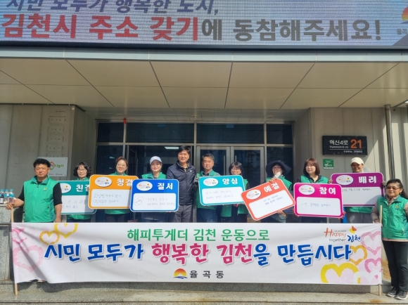 또한, 이날 율곡동 새마을지도자협의회 회원은 ‘친절·질서·청결·참여·양심·예절·배려’ 이상 7대 실천과제를 회원 스스로 지키고 홍보하고자 직접 작성하는 등 『해피투게더 김천 운동 관변단체 릴레이 챌린지』 시작을 알렸다.