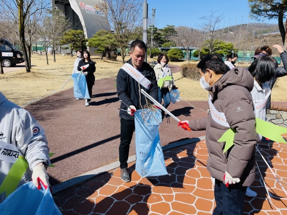 | 김천시(시장 김충섭) 스포츠산업과, 문화예술회관, 시설관리공단, 상무프로축구단, 김천시체육회 직원 70여명은 3월 13일(월) 오전 대대적으로 종합스포츠타운 대청결 운동을 실시했다.