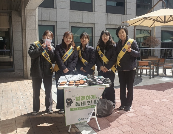 | 김천시 보건소는 지난 3월 13일 시청 구내식당 앞에서 청결하게 동네 한 바퀴 줍줍 챌린지를 추진했다.