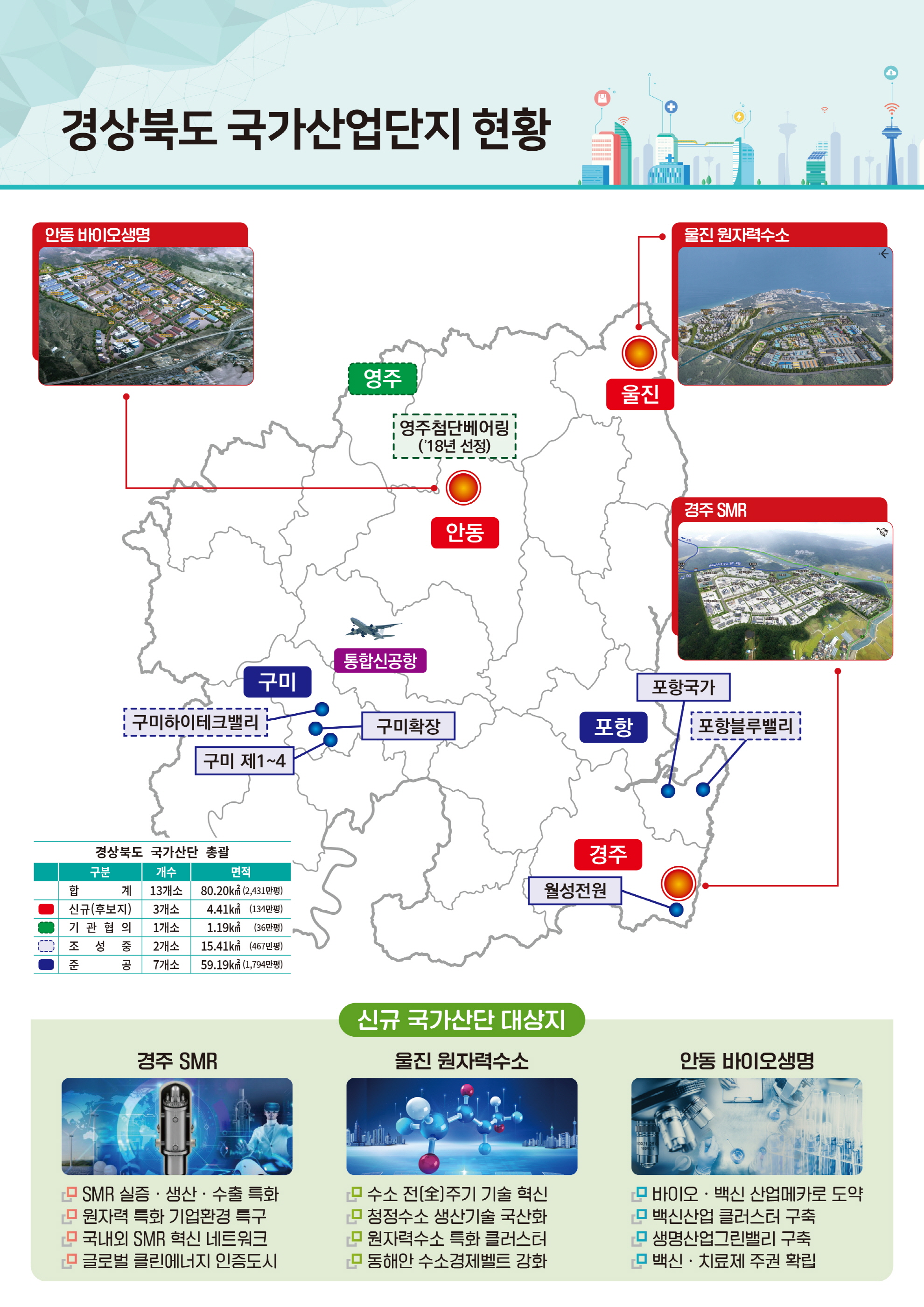 | 경북도가 원자력산업 거점 육성을 위해 추진해 온 `경주 SMR 국가산업단지와 울진 원자력수소 국가산업단지'가 국토교통부의 국가산업단지 후보지로 최종 선정되었다.