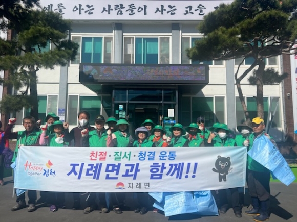 | 김천시 지례면 새마을협의회(지도자 전익수, 부녀회장 김명주)에서는 3월 15일 지례면 관내 하천과 마을 주변을 청소하며 ‘Happy together 김천 운동’을 실천했다.