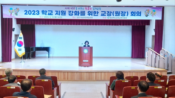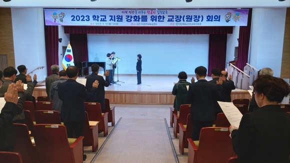| 경상북도김천교육지원청(교육장 공현주)은 지난 3월 13일, 14일 양일 간 김천학생문화예술센터에서 ‘학교 지원 강화를 위한 관리자 회의 및 청렴다짐식’을 개최하였다.
