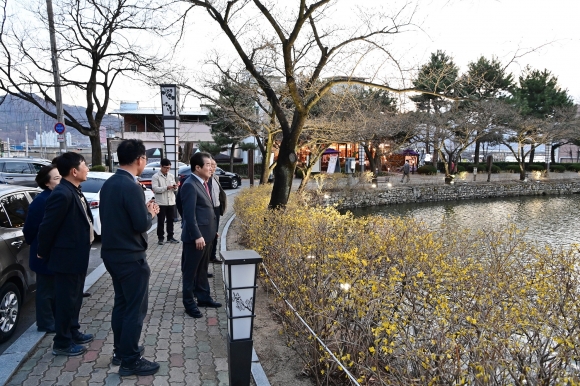 | 김충섭 김천시장은 봄철 벚꽃 개화 시기에 맞춰 김천8경 중 하나로 전국적인 벚꽃 명소로 알려진 교동 연화지를 3월 15일 저녁 시간에 직접 정비 상황을 점검했다.