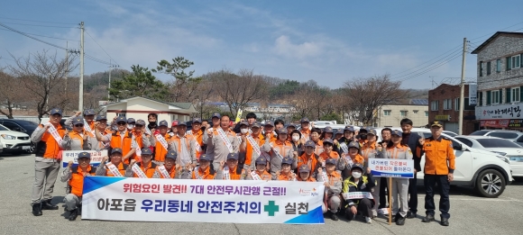| 아포읍 남녀의용소방대(대장 신정환, 김재인) 회원 50여명은 3월 20일 오후 12시부터 읍 행정복지센터 소재지를 중심으로 우리동네 안전주치의 활동을 펼쳤다.