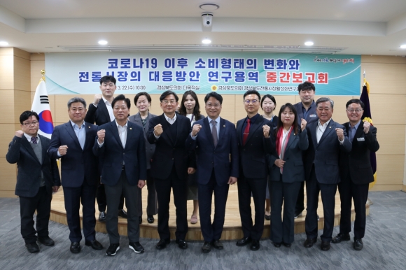 | 경북도의회 의원연구단체인「경상북도전통시장활성화연구회」(대표 배진석 의원, 경주)는 3월 22일 도의회 다목적실에서 ‘코로나19 이후 소비형태의 변화와 전통시장의 대응방안 연구용역’ 중간보고회를 개최했다.