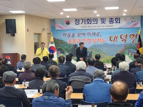 | 김천시노인회 대덕면분회(분회장 전정식)에서는 3월 23일(목) 대덕면(면장 임창현) 행정복지센터 3층 회의실에서 대덕면 경로당 회장 및 총무 70여 명이 참석한 가운데 총회를 개최했다.
