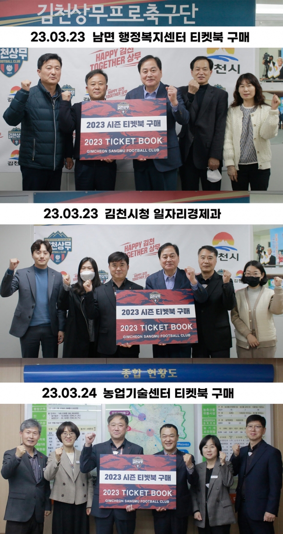| 김천시 농업기술센터, 남면 행정복지센터, 김천시청 일자리경제과가 김천상무 티켓북 구매 릴레이에 동참했다.