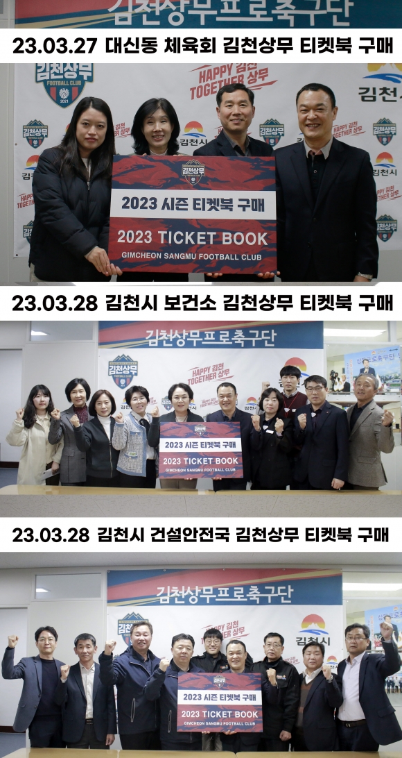 | 김천시 대신동 체육회, 김천시청 건설안전국, 김천시 보건소가 김천상무 티켓북 구매 릴레이에 동참했다.