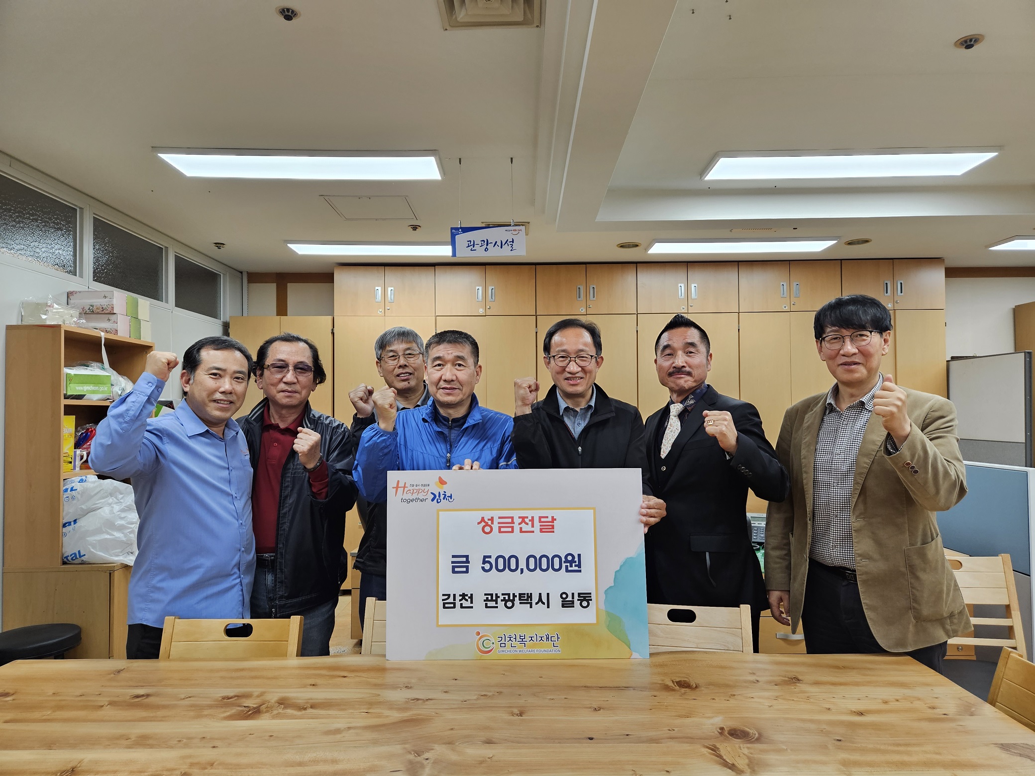 | 김천 관광택시(기사 9명)는 지난 3월 28일 성금 50만 원을 김천복지재단에 기탁했다.