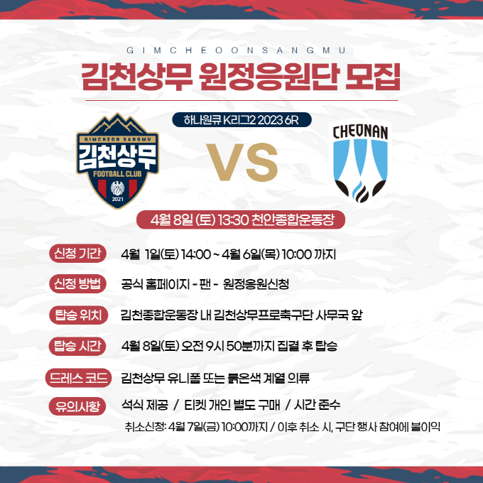 김천상무, 천안시티FC전 원정응원단 모집