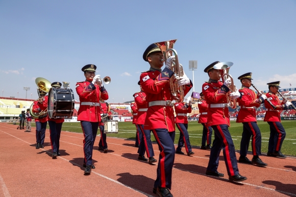 식전 행사로는 50사단 군악대, 제2작전사령부 의장대 등 퍼포먼스 공연을 비롯해 이유현 100경기 출장 기념식을 진행했다. 김천 구단 역사상 최초로 진행한 ‘매치볼 딜리버리’의 주인공은 이재훈 군이었다.