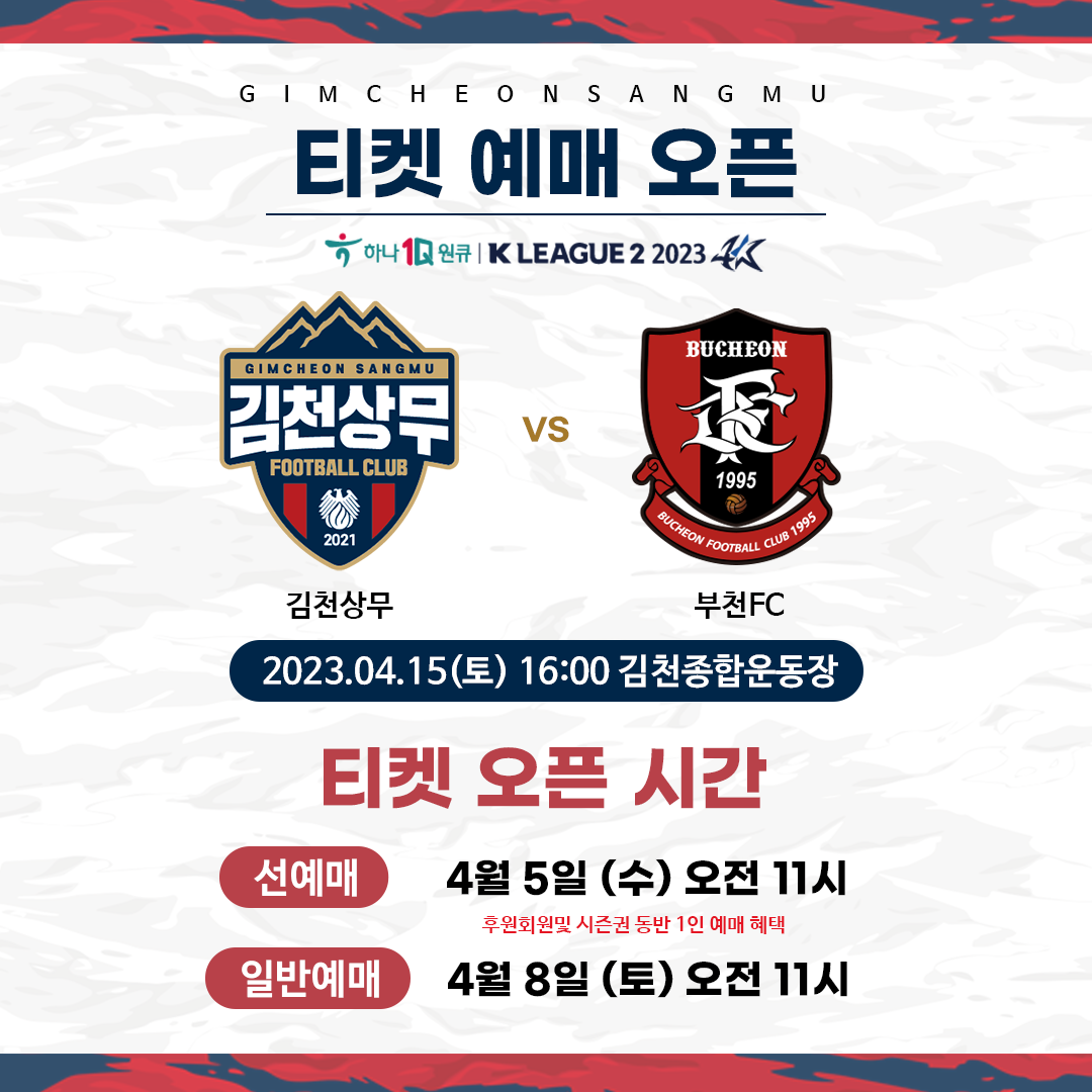 | 김천상무가 4월 리그 2연전 홈경기 티켓을 순차적으로 오픈한다.