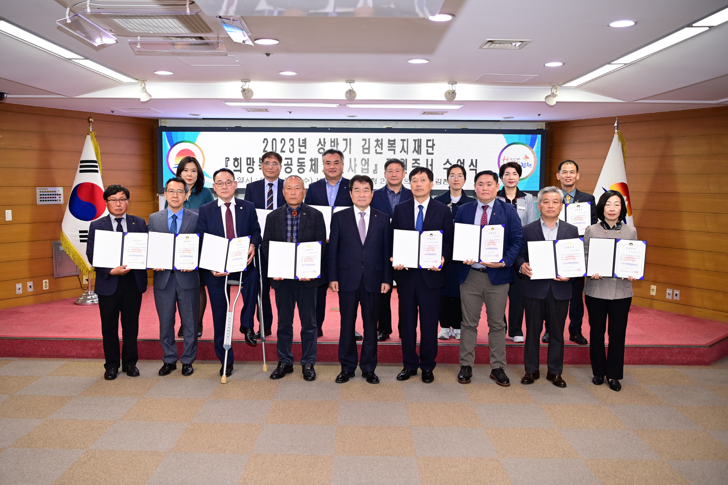 | 김천복지재단(이사장 김충섭)에서는 4월 5일 2023년 상반기 『희망 복지공동체지원사업』공모에 선정된 14개 기관‧단체에 지원금을 전달했다고 밝혔다.