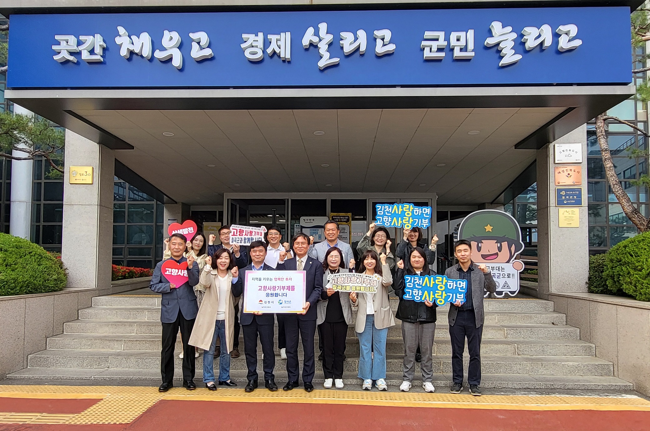 김천시와 칠곡군의 일자리경제과 직원 20여명은 고향사랑기부제의 성공적인 정착과 기부문화 확산을 이어가기 위해 상호 기부를 실천하며 고향사랑기부제의 활성화와 지역발전을 서로 응원했다.