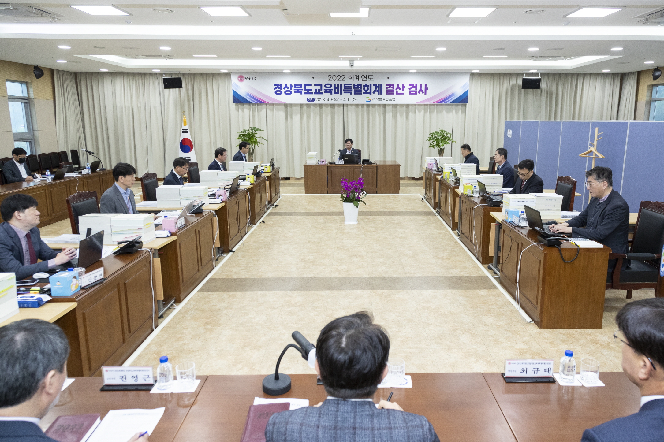 경상북도교육청 결산검사 첫 날인 4월 5일에는 배한철 의장, 이선희 예산결산특별위원장 등이 도교육청 화백관에 설치된 결산검사장을 방문하여 결산검사위원들을 격려했다.
