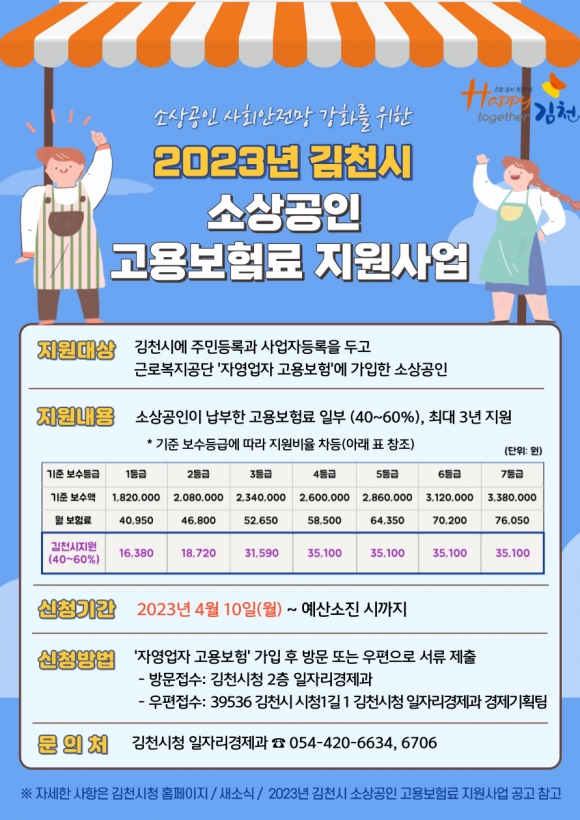 김천시, 2023년 소상공인 고용보험료 지원사업 접수