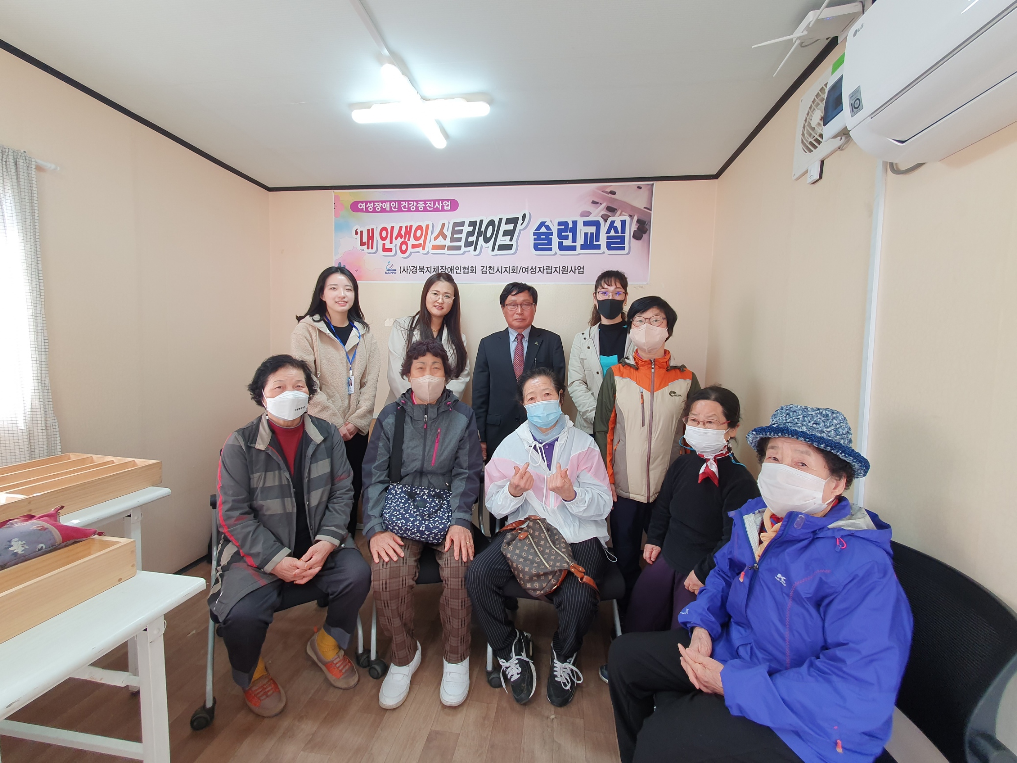| 사)경북지체장애인협회 김천시지회(지회장 박희만)는 4월 7일 지회 사무실에서 여성장애인 건강증진사업으로 진행하는 “슐런교실” 개강식을 가졌다.