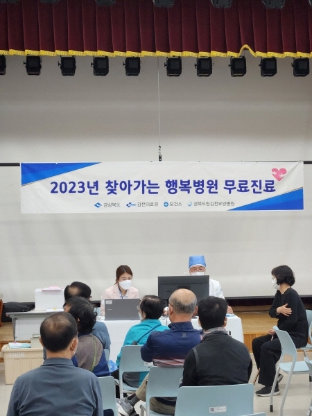 ‘찾아가는 행복병원’ 사업은 의료취약 지역에 살고 있는 독거노인 및 취약의료계층에게 건강증진을 도모하는 사회공헌사업으로 김천시장애인종합복지관에서 기초검진, 골밀도 검사, 혈액검사, 방사선 촬영, 초음파검사 등 체계적인 진료로 구성되어 있다.