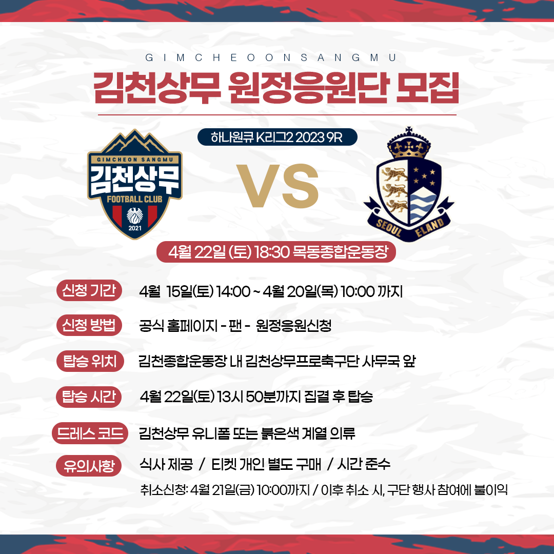 김천상무, 서울이랜드FC전 원정응원단 모집
