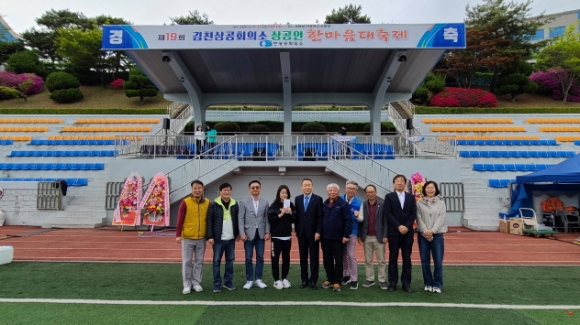 |  | | | ⓒ 김천내일신문 | | 김천상공회의소(안용우)는 지난 4월 15일 경북보건대학교 운동장에서 관내 기업체 및 기관·단체 선수와 임직원, 가족 등 1,000여명이 참석한 가운데「제19회 김천상공회의소 상공인 한마음 대축제」를 성황리 개최했다고 밝혔다.