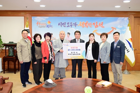 이번 성금은 능호스님이 50만 원을 쾌척하고 신도회에서 50만 원을 모금하여 마련한 것으로 김천복지재단을 통해 지역사회 내 어려운 이웃을 위해 쓰일 예정이다.