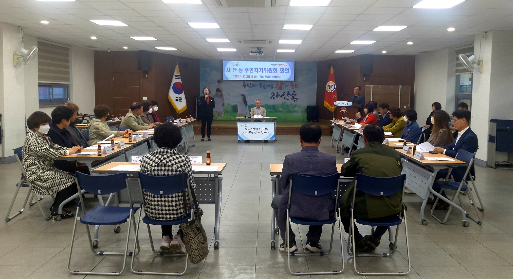| 자산동 주민자치위원회(위원장 박봉길)는 4월 17일 자산동 행정복지센터(동장 김경하) 대회의실에서 4월 정기회의를 개최했다.