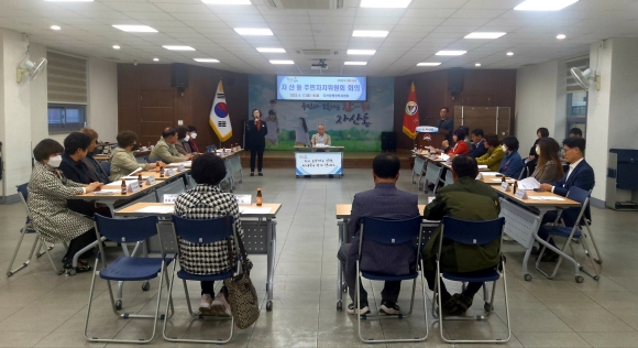 「우리 동네 깨끗하데이」 청소 책임제는 「Happy together 김천」 운동 목적으로 올해부터 추진하는 주력사업이다. 자산동 전역을 37개 구역으로 나누고 통별 봉사자 약 180명을 모집하여 내 집 앞 환경부터 정비하는 사업으로, 주민자치위원회의 협조 및 지원사항 등에 관해 논의 했다.