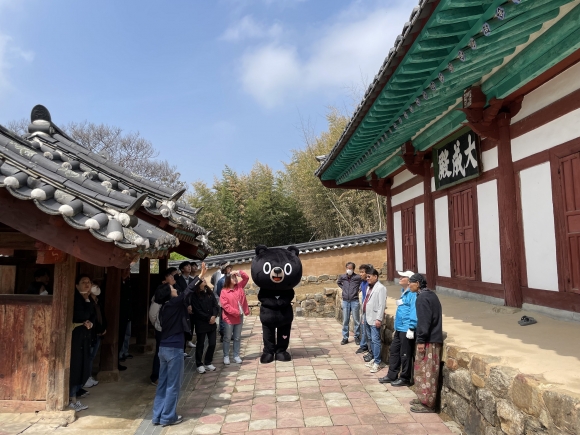 | 김천시에서는 4월 19일 도 지정 문화재인 김산향교에서 한국예총 김천지회 회원들과 ‘오삼이와 함께 하는 줍깅, 보깅!!’ 해피투게더 김천 운동을 했다.