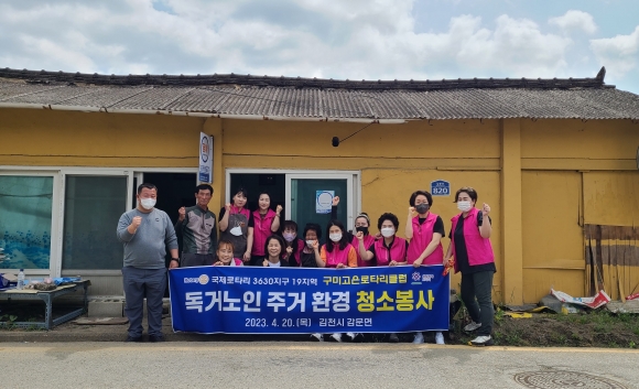 | 고은로타리클럽(회장 정수목)은 4월 20일 감문면 소재 독거노인 가정을 방문하여 대대적인 주거환경정화 봉사활동을 했다.
