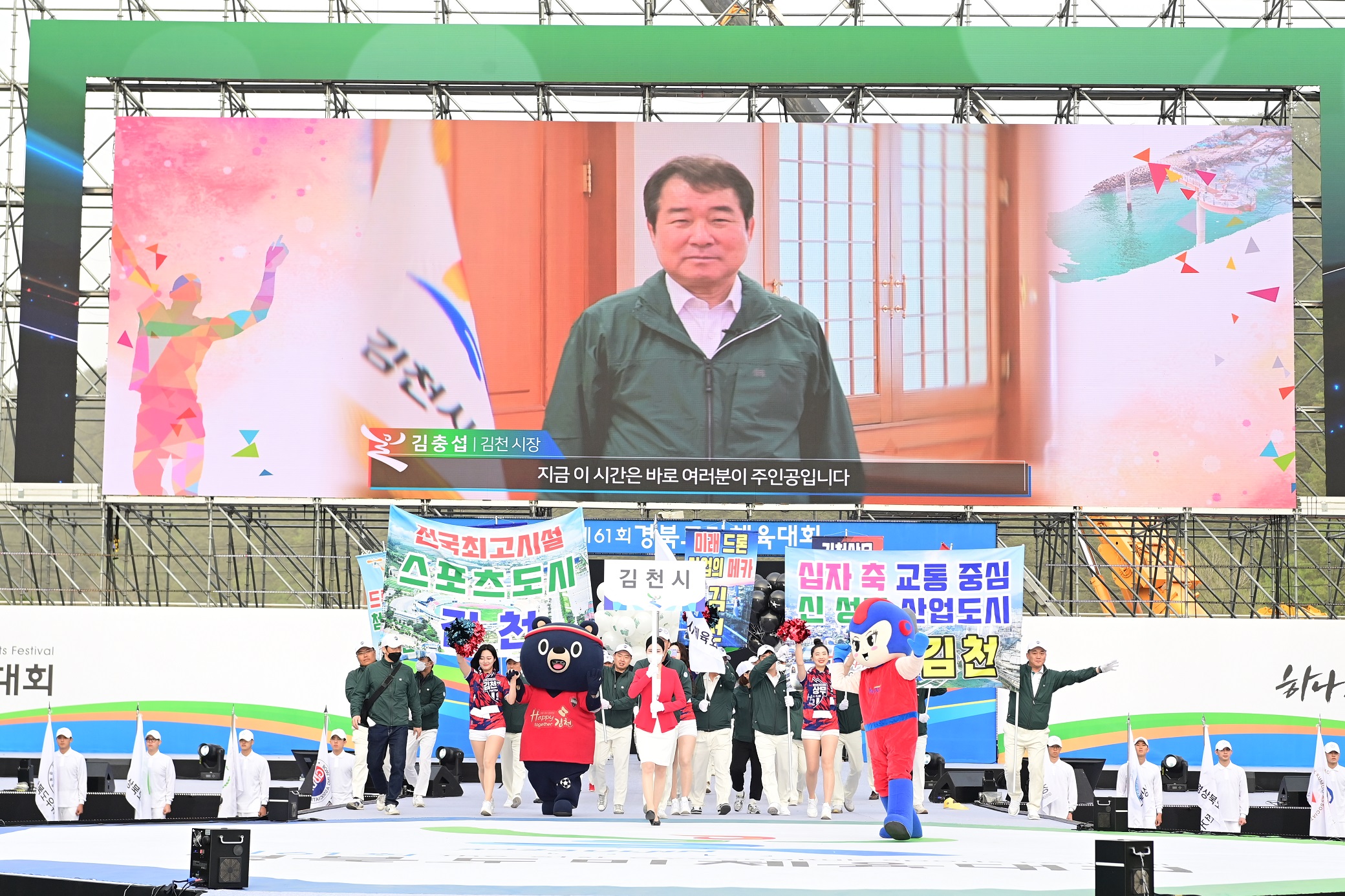 한편, 김천시는 개회식 입장 퍼포먼스에서 드론, 첨단산업과 스포츠 도시를 현수막과 풍선, 캐릭터 인형을 통한 창의적인 아이디어로 표현해내 관객의 호응과 환호를 끌어내며 입장상을 수상했다.