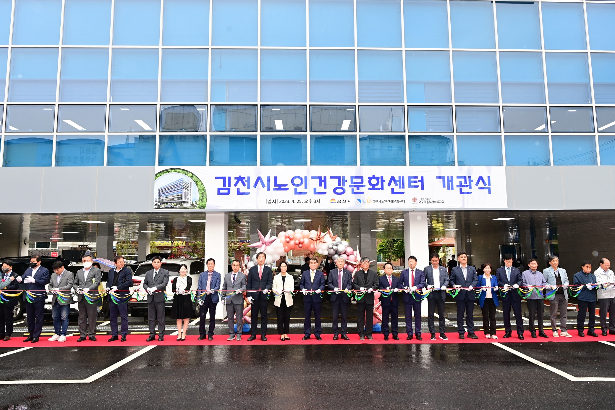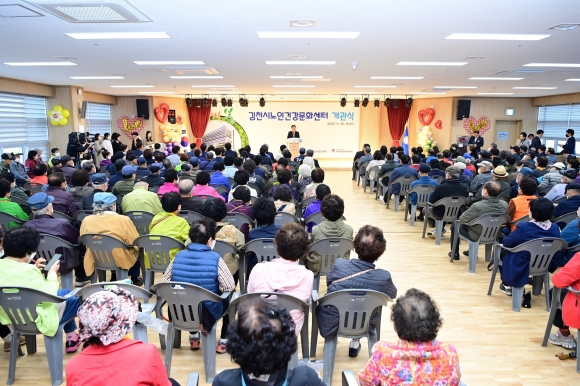 | 김천시(시장 김충섭)는 4월 25일 김충섭 김천시장, 이명기 김천시의회 의장, 시의원, 최광경 대구가톨릭사회복지회 대표이사, 이부화 노인회장, 평화남산동 기관단체장, 김천시노인복지관 이용 어르신 등 300여 명이 참석한 가운데 김천시 노인건강문화센터 개관식을 개최했다.