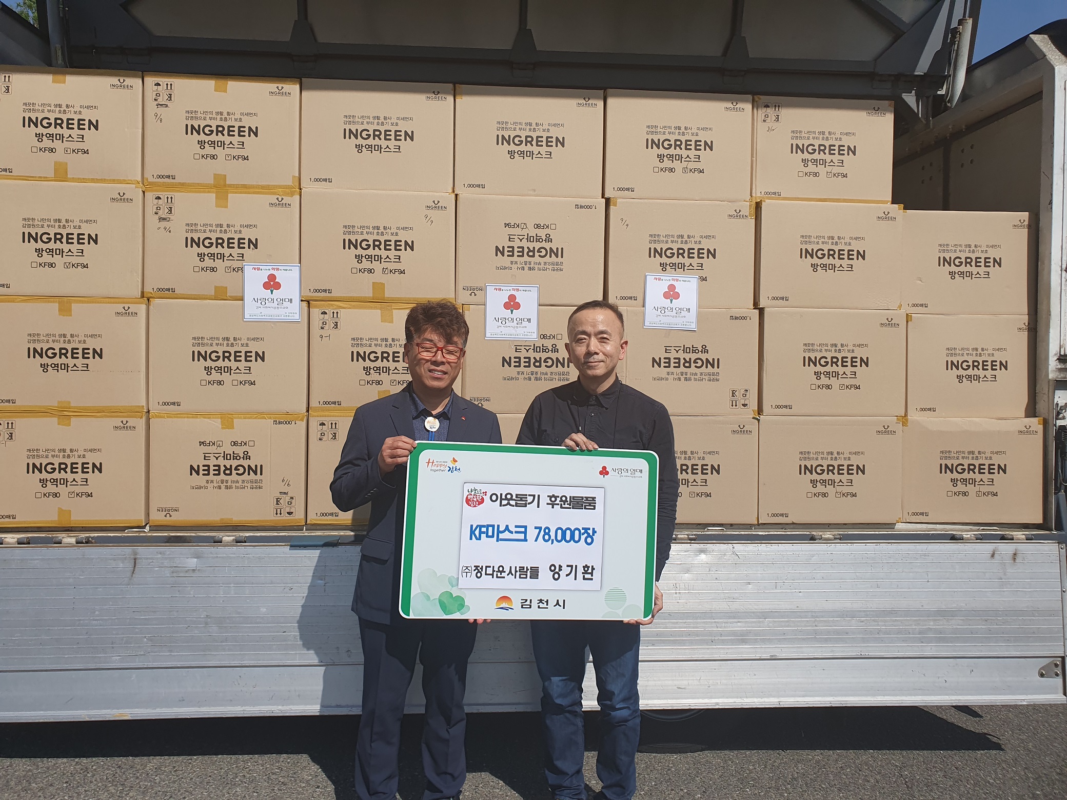대구에 거주하며 사업상 김천에 왕래하는 기탁자 양 대표는 평소에도 마스크를 비롯하여 기탁 물품을 소외계층에 후원하며 이웃사랑 실천에 앞장서고 있다.