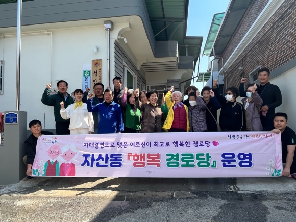 「행복경로당」은 자산동의 「Happy together 김천」 실천 운동으로 추진하고 있는 사업으로 자산동 관내 경로당 7개소와 10개 사회단체가 2022년 자매결연을 하여 정기적인 봉사활동을 실천하고 있다.