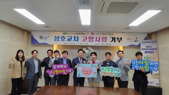 | 김천시(시장 김충섭) 복지기획과는 지난 5월 2일 고향사랑기부제를 활성화하고 지역사회 내 동참 분위기를 확산하기 위해 상주시 미래정책실과 상호 교차 기부에 나섰다.