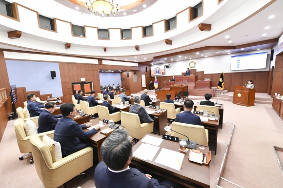 | 5월 3일 제236회 임시회를 연 김천시의회는 5월 12일까지 이승우 의원이 대표 발의한 김천시 기업 ESG 경영 지원에 관한 조례안 등 14건과 제1회 추가경정예산안, 행정사무감사계획서 작성 등을 심사· 의결한다.