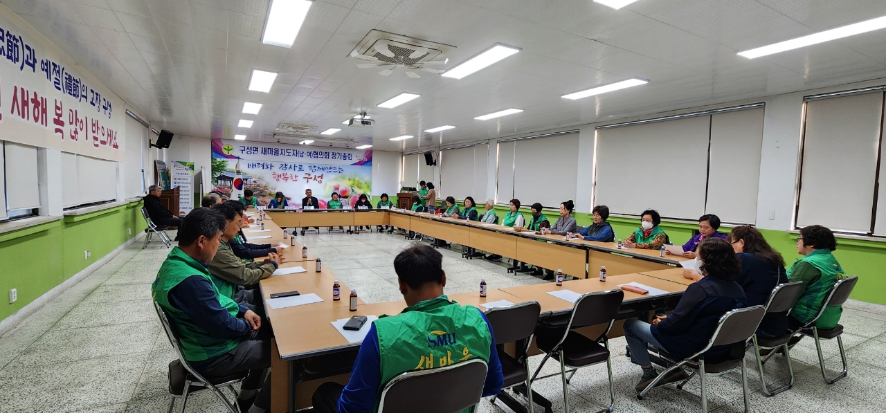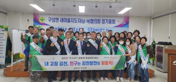 | 김천시 구성면 새마을협의회(회장 김병기, 부녀회장 서흥년)에서는 5월 2일 새마을회원 40여 명이 참석한 가운데 구성면 행정복지센터 2층 회의실에서 정기회의 및 인구 증가 캠페인을 벌였다. 이날 회의에서는 2023년 상반기 사업에 대한 평가와 하반기 실시할 새마을 사업에 대해 회원들의 의견을 듣고 수렴하는 시간과 김천시 인구 증가에 구성면 새마을 회원들이 다 함께 참여하자는 캠페인도 했다.