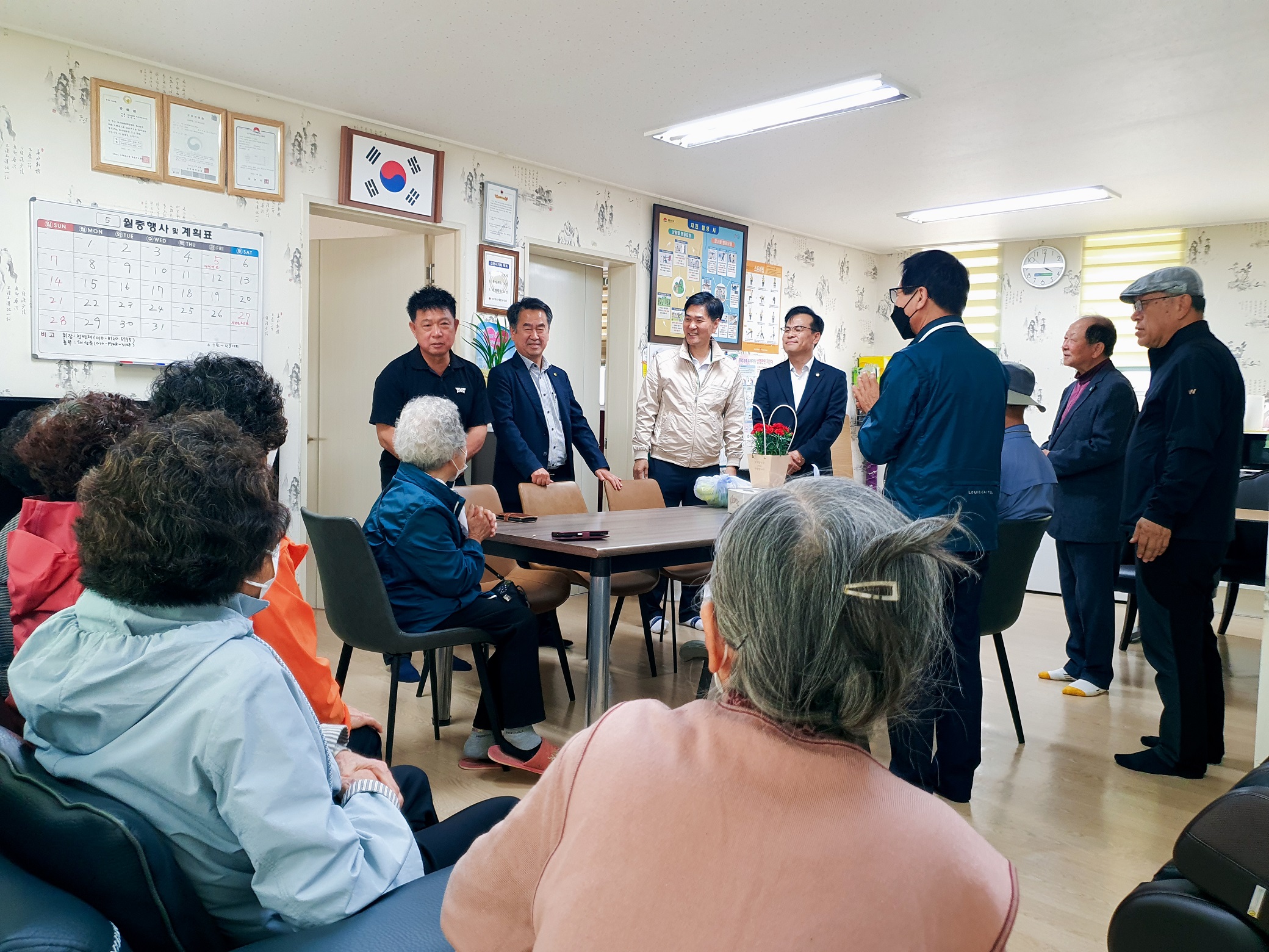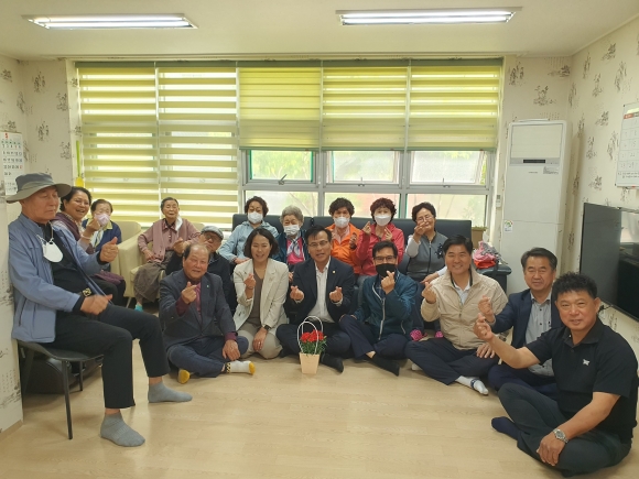 이날 경로당 방문에는 김종현 율곡동장, 조정구 율곡동 체육회장과 임원들뿐 아니라 김천시의회 박근혜 행정복지위원장, 임동규 시의원도 함께했다.