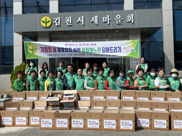 | 김천시 새마을회(회장 임영식, 협의회장 임상훈, 부녀회장 이영숙)는 어버이날을 앞둔 5월 3일, 홀몸 어르신들께 생필품을 전달하고 말벗, 집 안 정리 등 어르신을 정성껏 보살피는 시간을 가졌다.