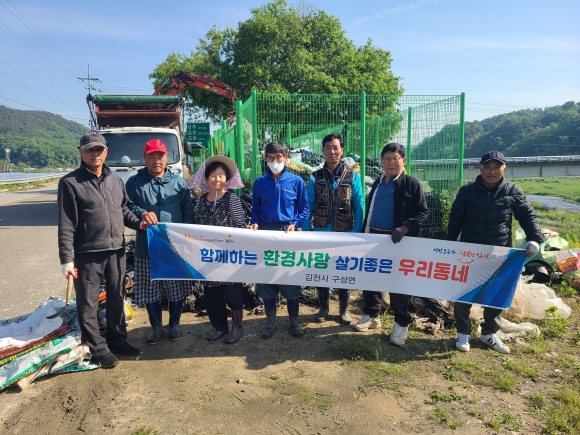 | 김천시 구성면(면장 김동진)에서는 5월 8일 「Happy together 김천」 청결 운동 추진의 하나로 광명1리 마을 영농폐기물 수거 및 환경정화 활동을 추진했다.