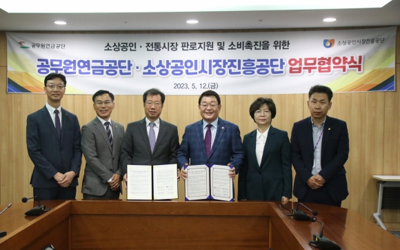 | 공무원연금공단(이사장 직무대행 임만규, 이하 공무원연금)과 소상공인시장진흥공단(이사장 박성효, 이하 소진공)이 5월 12일 공무원연금공단 본사(제주도 서귀포)에서 소상공인·전통시장 판로지원 및 소비촉진을 위한 업무협약을 체결하였다.