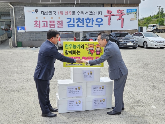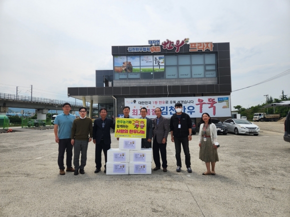 | (사)전국한우협회 김천시지부(지부장 김길환)는 가정의 달을 맞아 지난 5월 12일 300만 원 상당의 한우 소고기 80kg을 김천시노인종합복지관에 전달했다. 한우협회 김천시지부장 김길환은 “소소한 나눔이지만 어르신들께서 김천한우 ‘우뚝’을 드시고 건강하시길 바라며, 조금 더 따뜻한 가정의 달을 보내시길 바라는 마음으로 기부하게 되었다. 앞으로도 소외된 이웃을 위한 지속적인 후원으로 지역사회 나눔 문화 확산을 위해 노력하겠다.”라고 말했다.