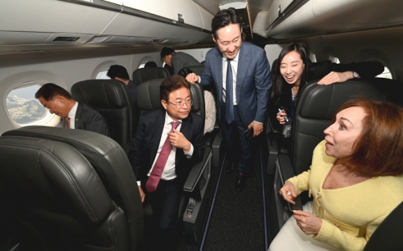 - 세계 최대 중소형 항공기 제작사 ‘엠브레어’와 업무협약 체결 - - 경북 항공산업 컨설팅·자문, MRO 및 항공훈련지원 시설 설립 등 협력 - - 협약식 후 주력 제트여객기로 울릉도 상공 선회 시범비행 진행 -