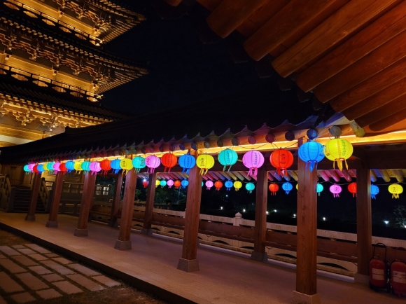 | 부처님오신날(5월 27일)을 앞두고 김천시시설관리공단(이사장 김재광)은 사명대사공원 평화의탑 회랑에 봉축 연등을 설치했다.