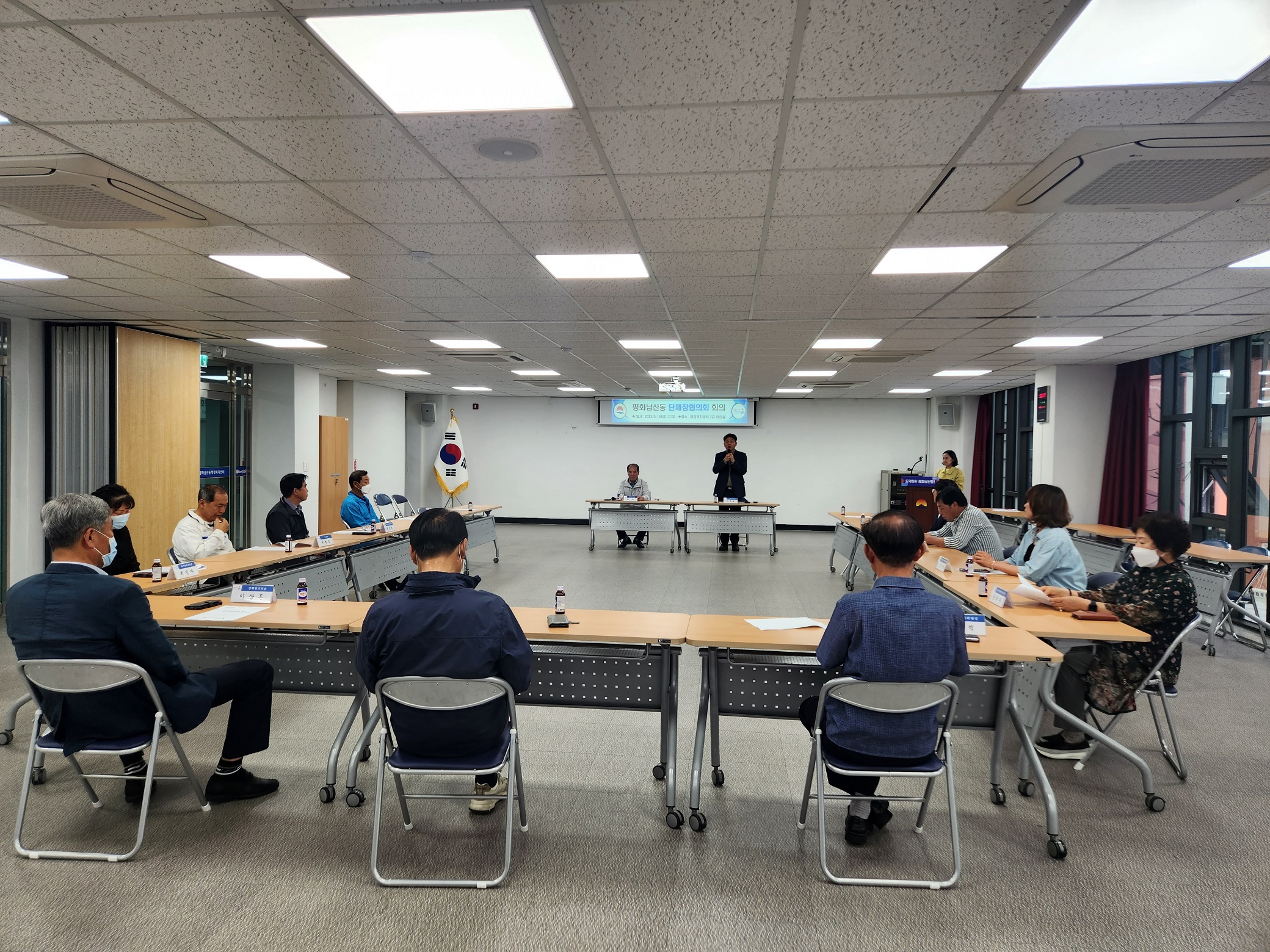 | 평화남산동(동장 이우원)에서는 지난 5월 19일 행정복지센터 2층 회의실에서 관내 단체장 14명이 참석한 가운데 단체장 회의를 개최했다.