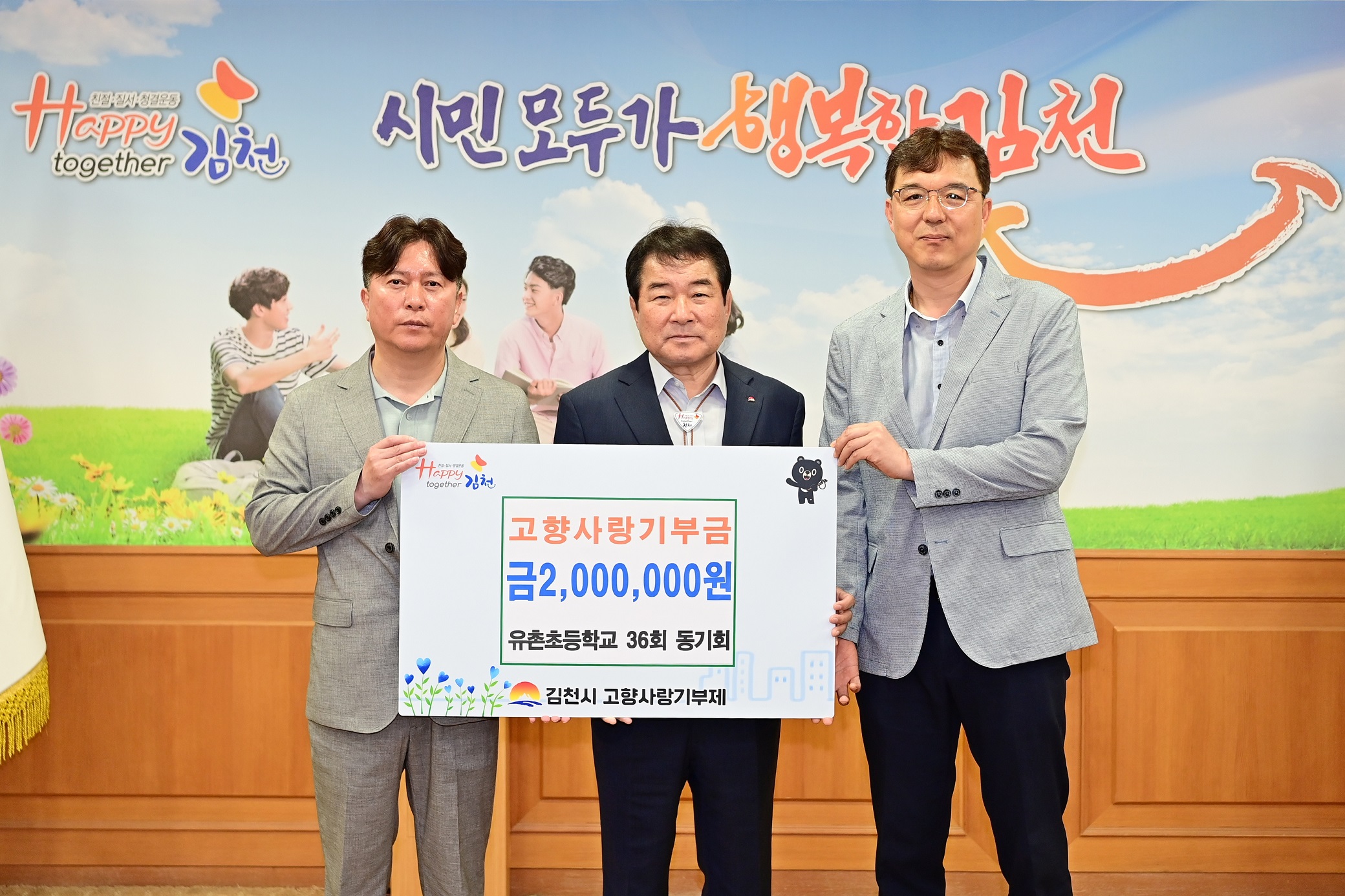 김충섭 김천시장은 “모두가 어려운 상황에서도 따뜻한 마음을 전달해 주신 유촌초 동창생께 감사드린다”라며 “소중한 기부금은 김천시와 주민들의 복리 증진을 위해 감사히 쓰겠다.”라고 말했다.
