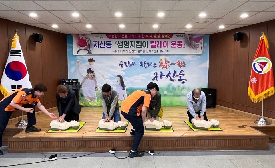 「생명지킴이 릴레이 운동」은 자산동의 「Happy together 김천」 실천 운동 사업으로 안전사고에 대비하고 시민 안전 문화 조성 및 건강한 지역사회 발전에 이바지하기 위해 기획되었으며, 교육생에게는 수료증도 내줄 계획이다.
