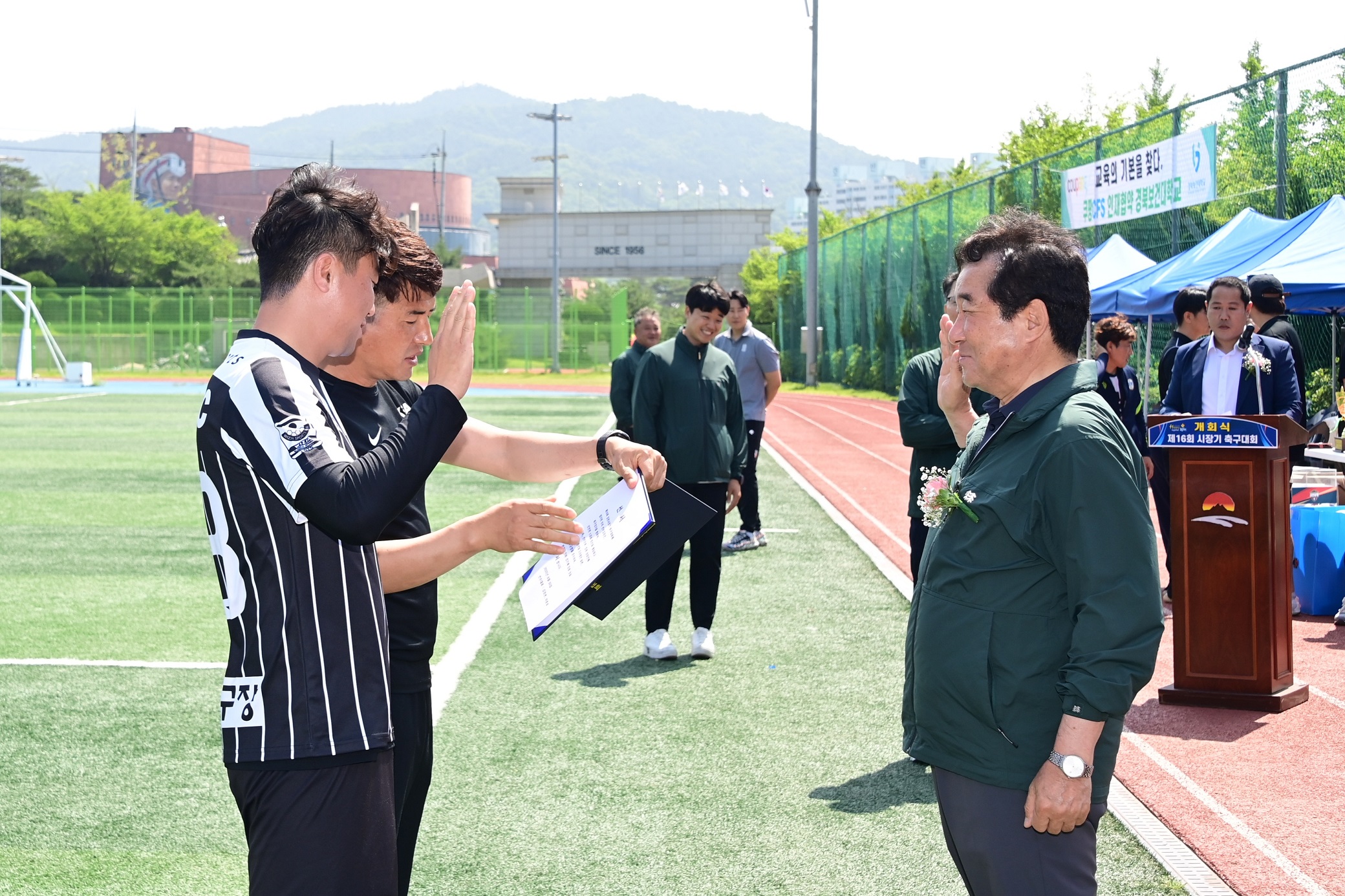 | 지난 6월 3일부터 이틀간 열린 『제16회 김천시장기 축구대회』가 경북보건대, 김천대학교 운동장에서 16개 팀, 350여 명의 동호인들이 참가한 가운데 성료되었다.